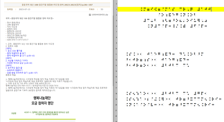 *일반적인 인쇄물을 읽을 수 없는 장애인들을 위해 제작한 자료