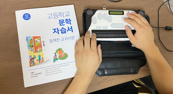 “점자 문제집을 신청하고 완성본을 받기까지 걸리는 기간은 평균 5.1개월이라고 해요. 12월에 신청해도 5월에 받아보는 셈이니, 학기가 시작하기 전에 신청해도 중간고사가 끝나고 나서야 도착하는 거죠. 그러다 보니 시각장애 학생들은 문제집을 보며 예습은 커녕 진도에 맞춰 공부하기도 어려워요.”
