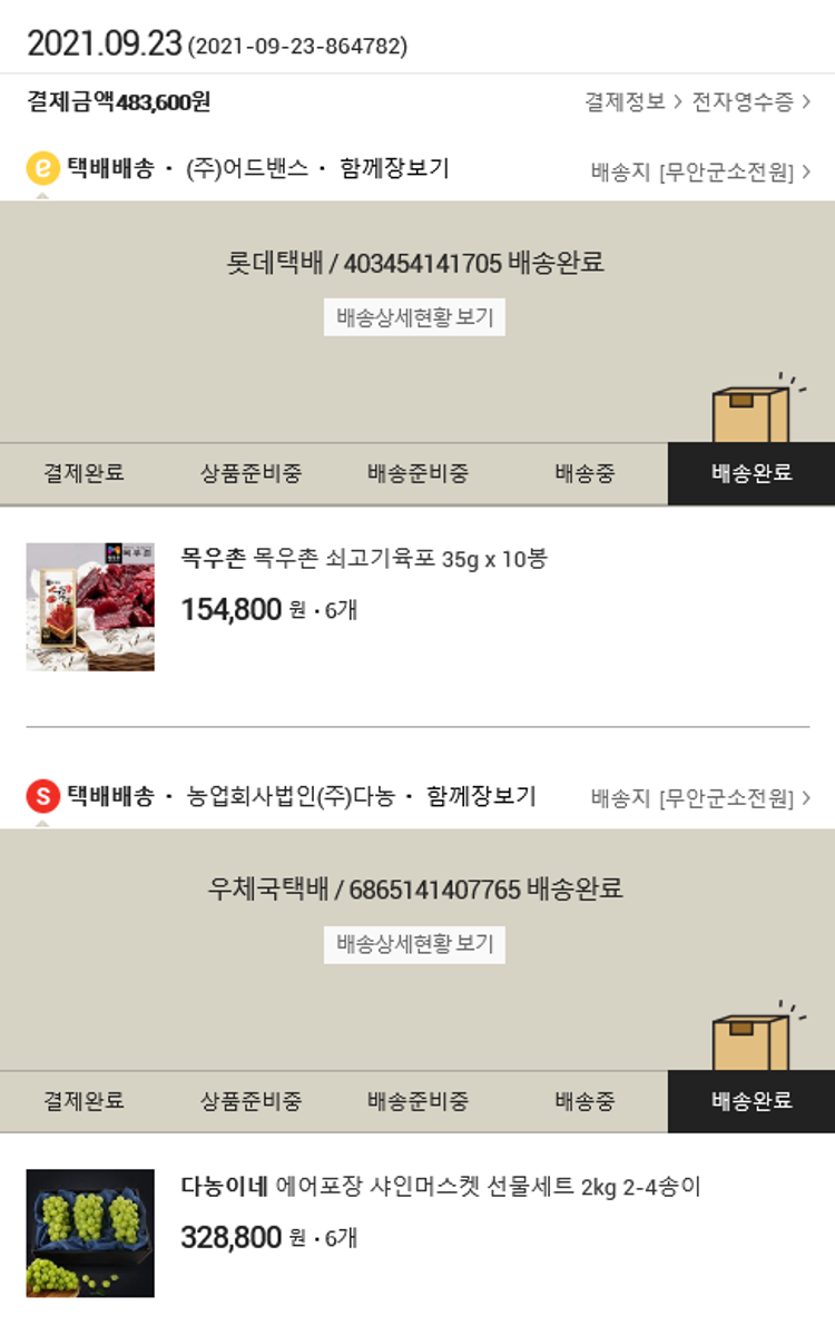 기부자님이 사용한 기부포인트 51,700원, 결제 수수료 12,759원, 기타 사업비는 행복나눔재단이 부담했습니다. (기부후기 발송시점에 최종 업데이트 됩니다.) 실제 쇼핑몰에서 확인되는 배송현황을 캡처한 내용입니다. 실시간 자료와는 차이가 있을 수 있습니다.