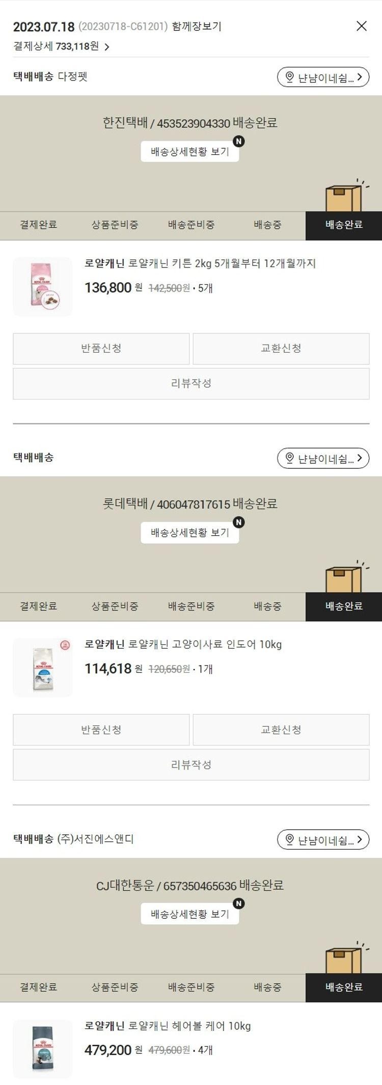 기부자님이 사용한 기부포인트 119,500원, 물품배송비 2,500원, 가격상승분 858원, 100원 미만 지원금 60원, 결제 수수료 15,139원, 기타 사업비는 행복나눔재단이 부담했습니다. (기부후기 발송시점에 최종 업데이트 됩니다.) 실제 쇼핑몰에서 확인되는 배송현황을 캡처한 내용입니다. 실시간 자료와는 차이가 있을 수 있습니다.