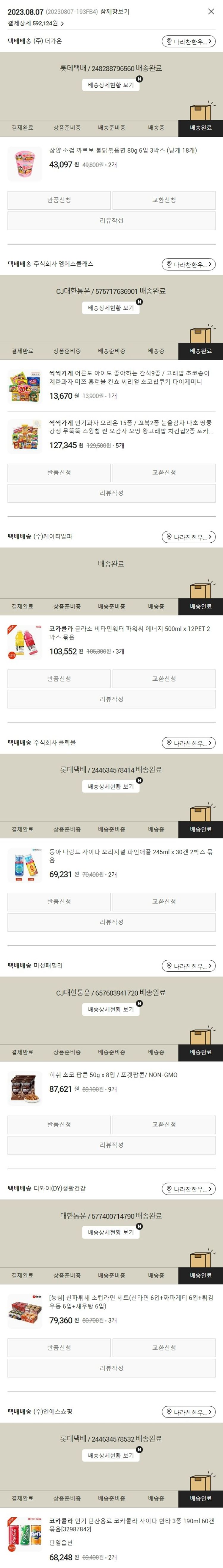 가격상승분 1,620원, 100원 미만 지원금 4원, 결제 수수료 16,521원, 기타 사업비는 행복나눔재단이 부담했습니다. (기부후기 발송시점에 최종 업데이트 됩니다.) 실제 쇼핑몰에서 확인되는 배송현황을 캡처한 내용입니다. 실시간 자료와는 차이가 있을 수 있습니다.