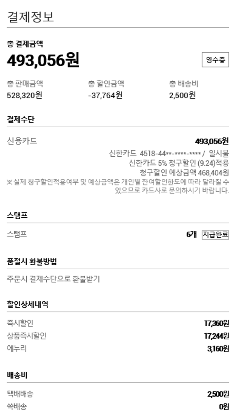 물품배송비 2,500원, 가격상승분 400원, 100원 미만 지원금 56원, 기타 사업비는 행복나눔재단이 부담했습니다. (기부후기 발송시점에 최종 업데이트 됩니다.) 실제 쇼핑몰에서 확인되는 배송현황을 캡처한 내용입니다. 실시간 자료와는 차이가 있을 수 있습니다.