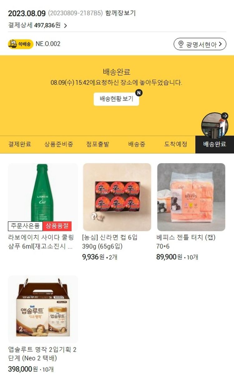 기부자님이 사용한 기부포인트 4,000원, 100원 미만 지원금 36원, 결제 수수료 9,234원, 기타 사업비는 행복나눔재단이 부담했습니다. (기부후기 발송시점에 최종 업데이트 됩니다.) 실제 쇼핑몰에서 확인되는 배송현황을 캡처한 내용입니다. 실시간 자료와는 차이가 있을 수 있습니다.
