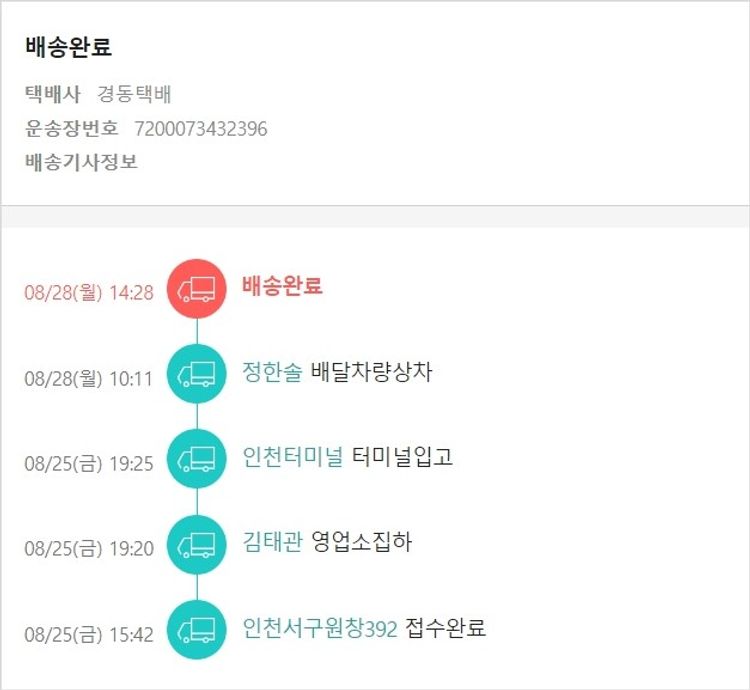 기부자님이 사용한 기부포인트 35,250원, 결제 수수료 10,451원, 기타 사업비는 행복나눔재단이 부담했습니다. (기부후기 발송시점에 최종 업데이트 됩니다.) 실제 쇼핑몰에서 확인되는 배송현황을 캡처한 내용입니다. 실시간 자료와는 차이가 있을 수 있습니다.