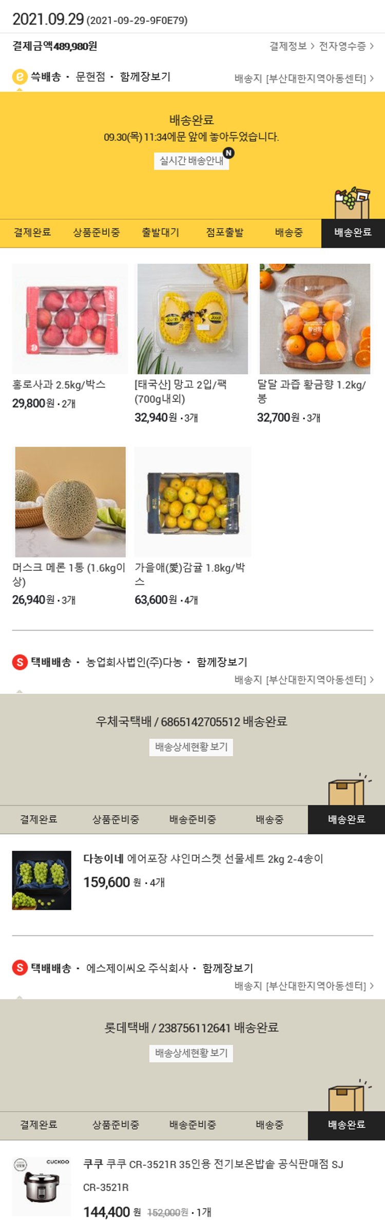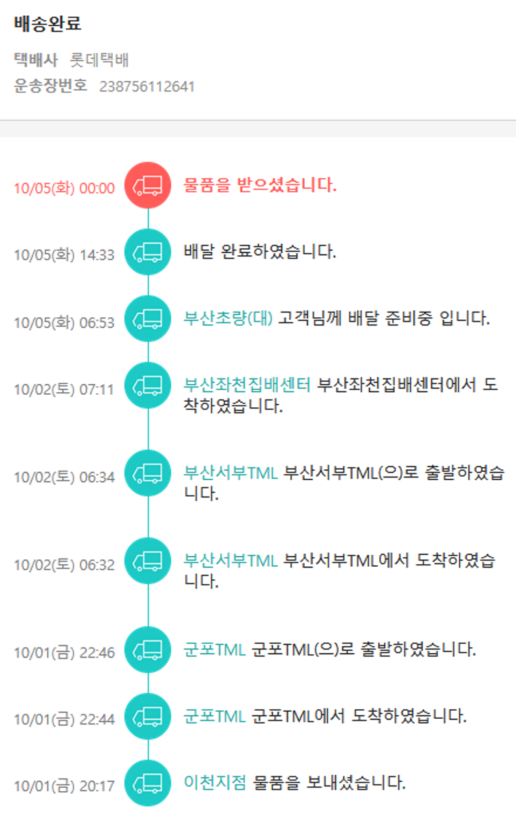 기부자님이 사용한 기부포인트 21,000원, 100원 미만 지원금 80원, 결제 수수료 11,049원, 기타 사업비는 행복나눔재단이 부담했습니다. (기부후기 발송시점에 최종 업데이트 됩니다.) 실제 쇼핑몰에서 확인되는 배송현황을 캡처한 내용입니다. 실시간 자료와는 차이가 있을 수 있습니다.
