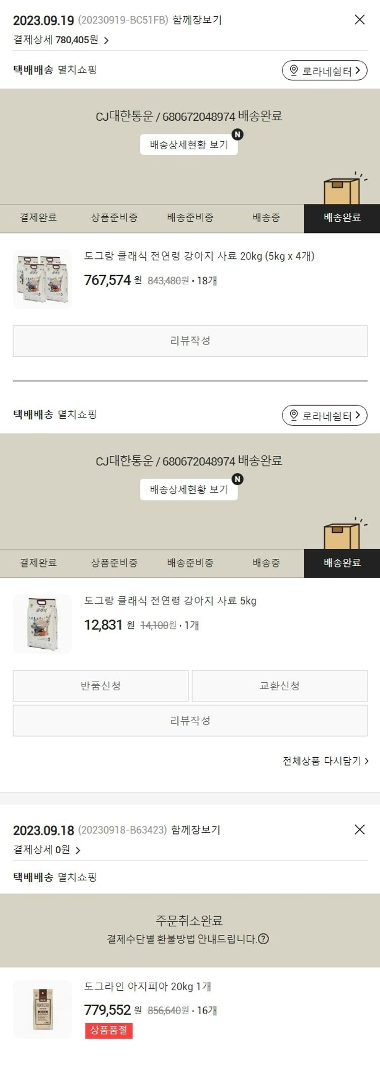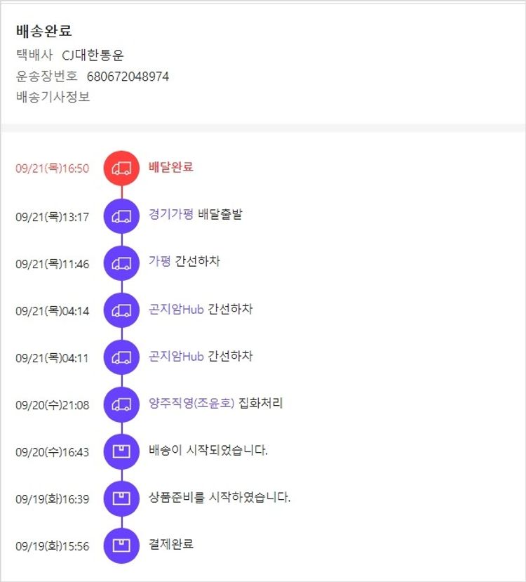 기부자님이 사용한 기부포인트 62,000원, 가격상승분 853원, 100원 미만 지원금 52원, 결제 수수료 17,644원, 기타 사업비는 행복나눔재단이 부담했습니다. (기부후기 발송시점에 최종 업데이트 됩니다.) 주문 건 중 품절 건 발생하여 2023. 09. 19. 재주문했습니다. 실제 쇼핑몰에서 확인되는 배송현황을 캡처한 내용입니다. 실시간 자료와는 차이가 있을 수 있습니다.
