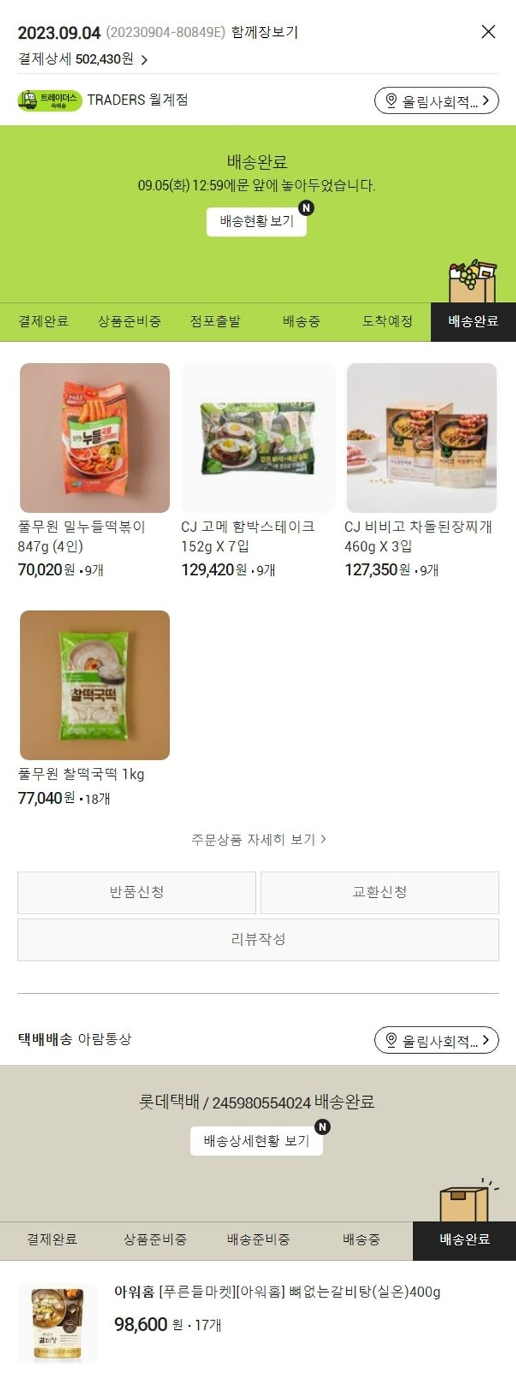 가격상승분 2,390원, 100원 미만 지원금 40원, 기타 사업비는 행복나눔재단이 부담했습니다. (기부후기 발송시점에 최종 업데이트 됩니다.) 실제 쇼핑몰에서 확인되는 배송현황을 캡처한 내용입니다. 실시간 자료와는 차이가 있을 수 있습니다.