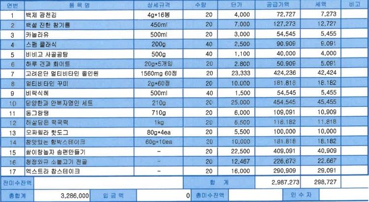 식품류 (참기름, 카놀라유, 견과, 핫도그, 함박스테이크, 김, 스팸, 잡곡)20개 (개당 43,500원)