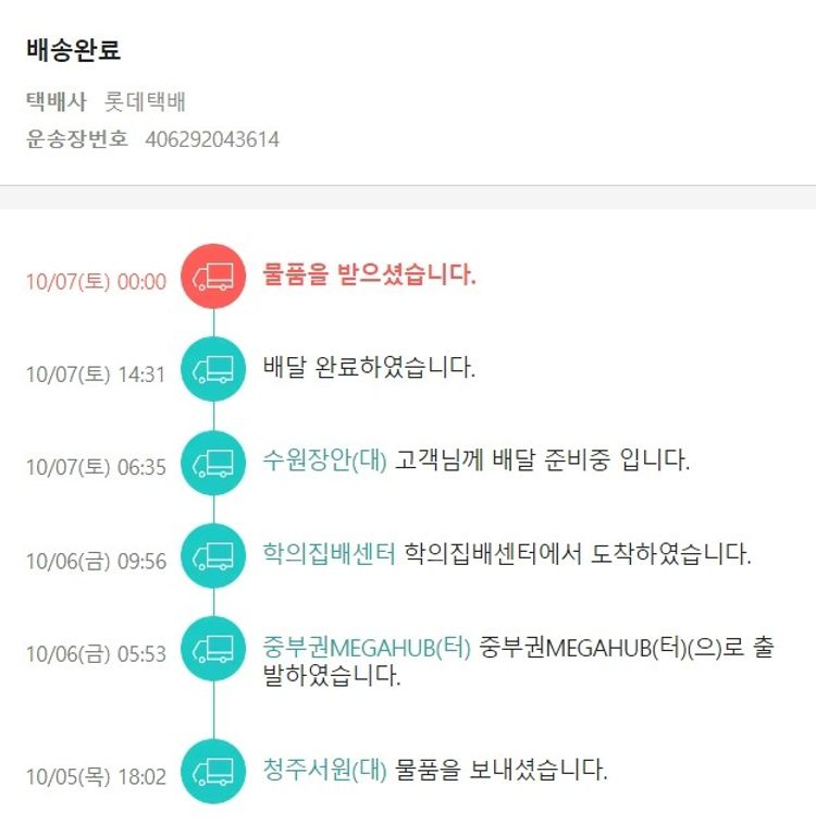 기부자님이 사용한 기부포인트 6,000원, 물품배송비 4,000원, 가격상승분 3,702원, 100원 미만 지원금 90원, 결제 수수료 13,594원, 기타 사업비는 행복나눔재단이 부담했습니다. (기부후기 발송시점에 최종 업데이트 됩니다.) 실제 쇼핑몰에서 확인되는 배송현황을 캡처한 내용입니다. 실시간 자료와는 차이가 있을 수 있습니다.