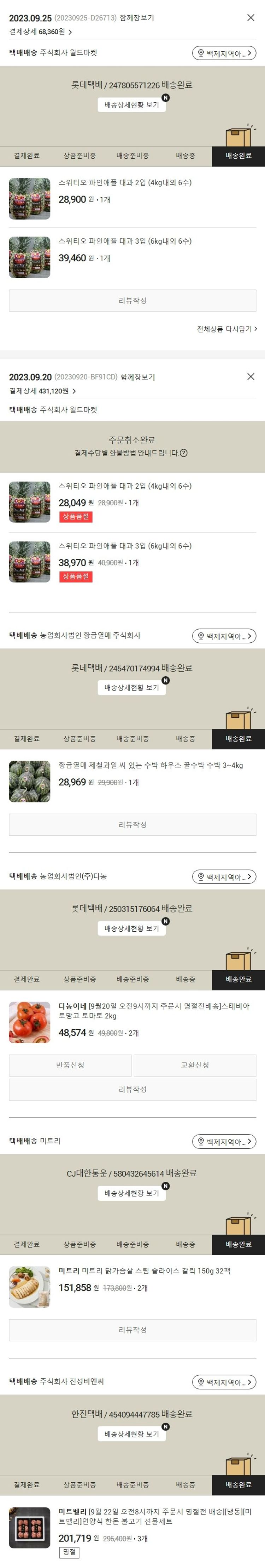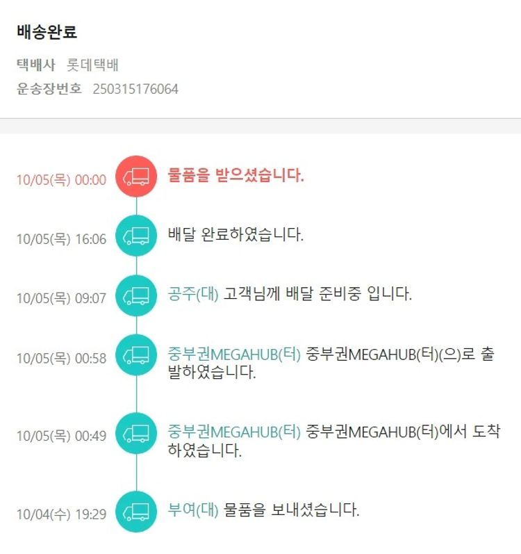 기부자님이 사용한 기부포인트 10,000원, 가격상승분 1,890원, 100원 미만 지원금 90원, 결제 수수료 12,312원, 기타 사업비는 행복나눔재단이 부담했습니다. (기부후기 발송시점에 최종 업데이트 됩니다.) 주문 건 중 품절 건 발생하여 2023. 09. 25. 재주문했습니다. 실제 쇼핑몰에서 확인되는 배송현황을 캡처한 내용입니다. 실시간 자료와는 차이가 있을 수 있습니다.