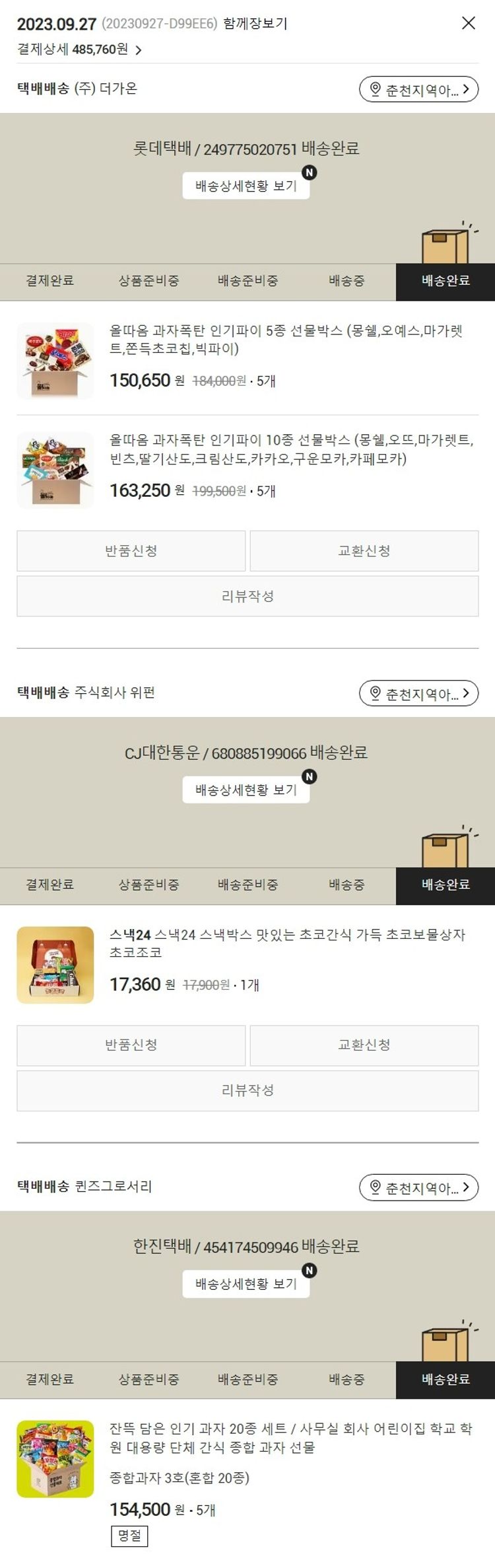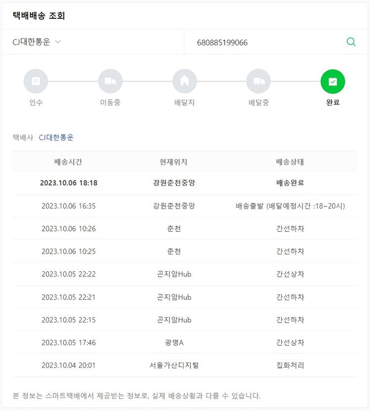 기부자님이 사용한 기부포인트 16,000원, 가격상승분 160원, 결제 수수료 9,490원, 기타 사업비는 행복나눔재단이 부담했습니다. (기부후기 발송시점에 최종 업데이트 됩니다.) 실제 쇼핑몰에서 확인되는 배송현황을 캡처한 내용입니다. 실시간 자료와는 차이가 있을 수 있습니다.