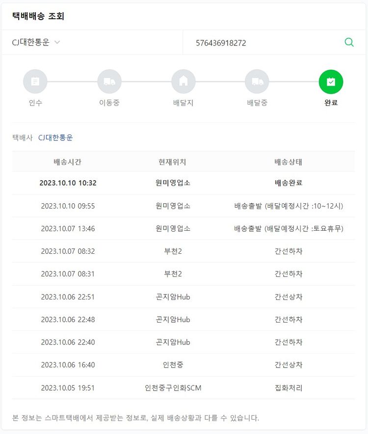 기부자님이 사용한 기부포인트 36,500원, 물품배송비 4,000원, 가격상승분 1,266원, 100원 미만 지원금 10원, 결제 수수료 10,277원, 기타 사업비는 행복나눔재단이 부담했습니다. (기부후기 발송시점에 최종 업데이트 됩니다.) 실제 쇼핑몰에서 확인되는 배송현황을 캡처한 내용입니다. 실시간 자료와는 차이가 있을 수 있습니다.