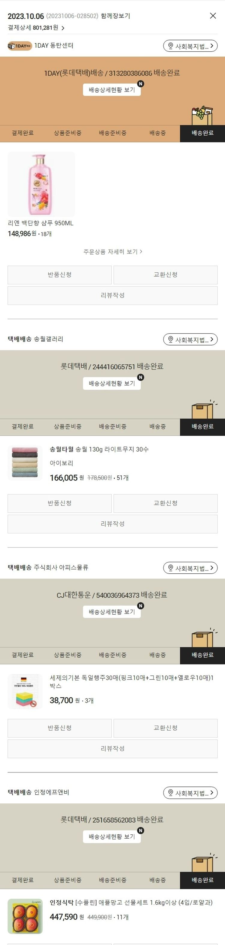 기부자님이 사용한 기부포인트 12,800원, 가격상승분 1,979원, 100원 미만 지원금 2원, 결제 수수료 21,339원, 기타 사업비는 행복나눔재단이 부담했습니다. (기부후기 발송시점에 최종 업데이트 됩니다.) 실제 쇼핑몰에서 확인되는 배송현황을 캡처한 내용입니다. 실시간 자료와는 차이가 있을 수 있습니다.