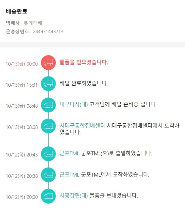 물품배송비 3,500원, 기타 사업비는 행복나눔재단이 부담했습니다. (기부후기 발송시점에 최종 업데이트 됩니다.) 실제 쇼핑몰에서 확인되는 배송현황을 캡처한 내용입니다. 실시간 자료와는 차이가 있을 수 있습니다.