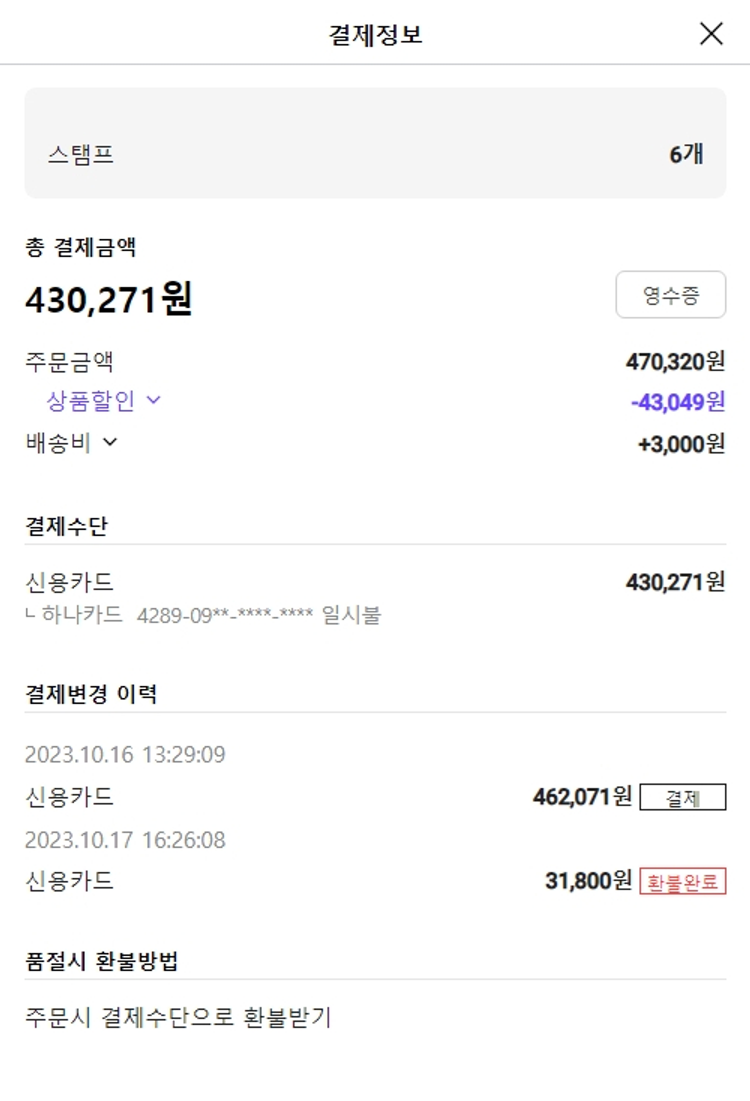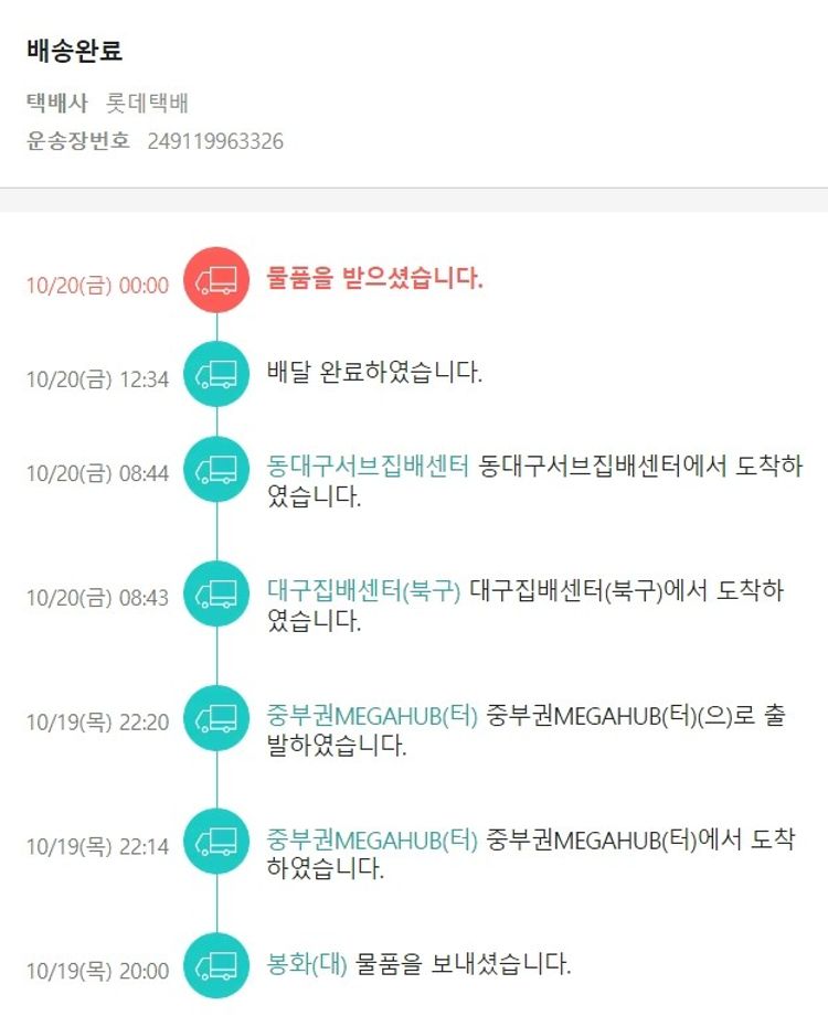 기부자님이 사용한 기부포인트 2,000원, 물품배송비 3,000원, 가격상승분 47원, 100원 미만 지원금 94원, 결제 수수료 12,510원, 기타 사업비는 행복나눔재단이 부담했습니다. (기부후기 발송시점에 최종 업데이트 됩니다.) 주문 건 중 품절 건 발생하여 2023. 10. 17. 재주문했습니다. 실제 쇼핑몰에서 확인되는 배송현황을 캡처한 내용입니다. 실시간 자료와는 차이가 있을 수 있습니다.