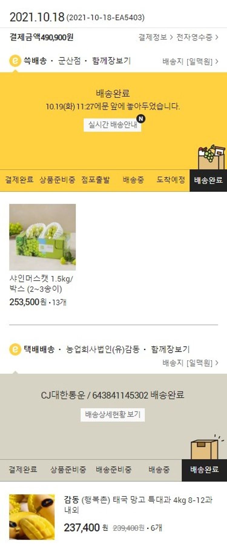 기부자님이 사용한 기부포인트 56,200원, 100원 미만 지원금 96원, 결제 수수료 11,521원, 기타 사업비는 행복나눔재단이 부담했습니다. (기부후기 발송시점에 최종 업데이트 됩니다.) 실제 쇼핑몰에서 확인되는 배송현황을 캡처한 내용입니다. 실시간 자료와는 차이가 있을 수 있습니다.