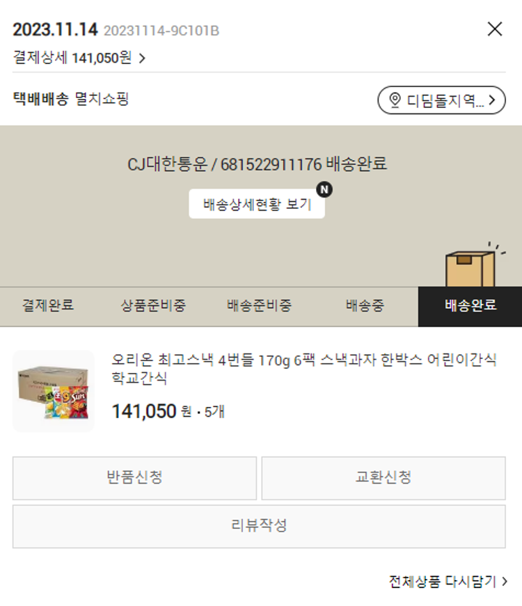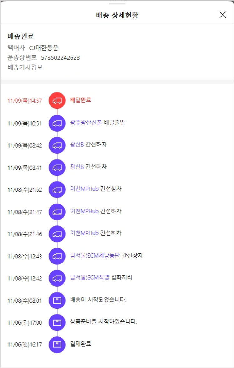 기부자님이 사용한 기부포인트 16,500원, 가격상승분 430원, 100원 미만 지원금 40원, SSG 머니 4,000포인트, 결제 수수료 11,225원, 기타 사업비는 행복나눔재단이 부담했습니다. (기부후기 발송시점에 최종 업데이트 됩니다.) *배송비 4,000원은 SSG머니로 결제 실제 쇼핑몰에서 확인되는 배송현황을 캡처한 내용입니다. 실시간 자료와는 차이가 있을 수 있습니다.