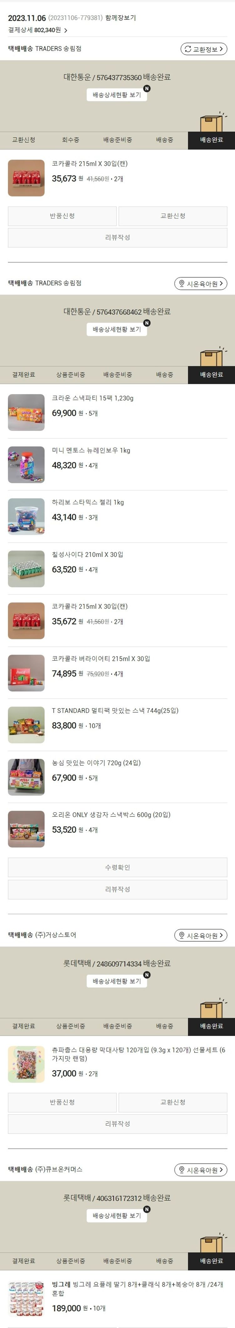 가격상승분 2,924원, 100원 미만 지원금 16원, 결제 수수료 19,143원, 기타 사업비는 행복나눔재단이 부담했습니다. (기부후기 발송시점에 최종 업데이트 됩니다.) 실제 쇼핑몰에서 확인되는 배송현황을 캡처한 내용입니다. 실시간 자료와는 차이가 있을 수 있습니다.