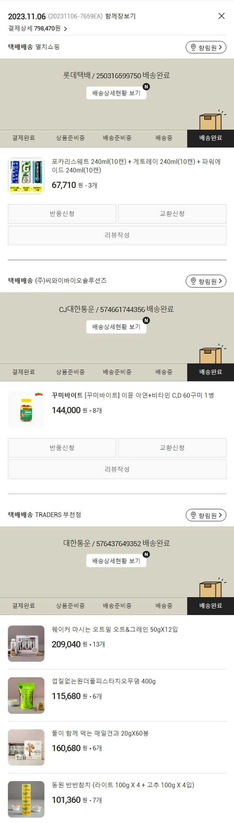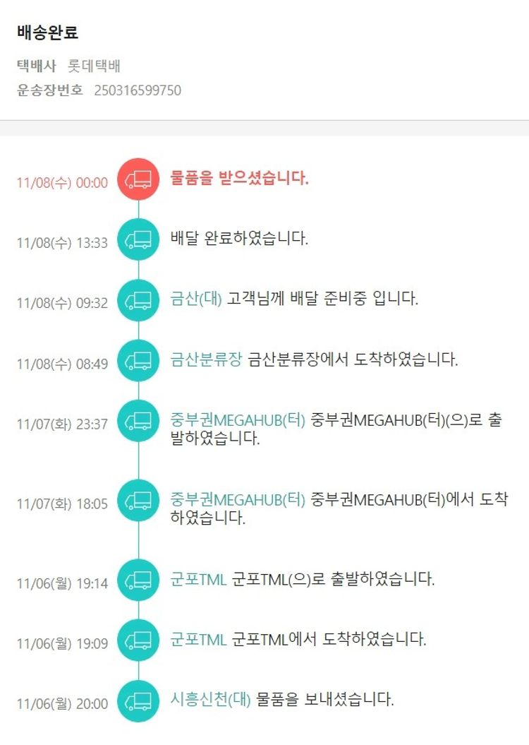 기부자님이 사용한 기부포인트 8,000원, 가격상승분 470원, 결제 수수료 18,130원, 기타 사업비는 행복나눔재단이 부담했습니다. (기부후기 발송시점에 최종 업데이트 됩니다.) 실제 쇼핑몰에서 확인되는 배송현황을 캡처한 내용입니다. 실시간 자료와는 차이가 있을 수 있습니다.