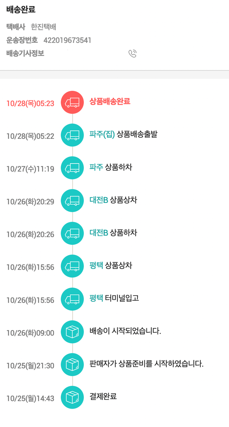 기부자님이 사용한 기부포인트 56,500원, 가격상승분 2,060원, 100원 미만 지원금 40원, 결제 수수료 11,571원, 기타 사업비는 행복나눔재단이 부담했습니다. (기부후기 발송시점에 최종 업데이트 됩니다.) 실제 쇼핑몰에서 확인되는 배송현황을 캡처한 내용입니다. 실시간 자료와는 차이가 있을 수 있습니다.