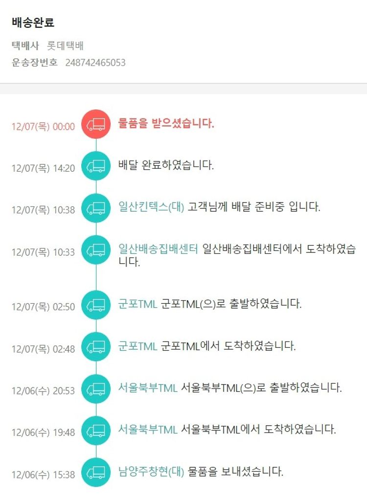 가격상승분 284원, 100원 미만 지원금 36원, 결제 수수료 16,477원, 기타 사업비는 행복나눔재단이 부담했습니다. (기부후기 발송시점에 최종 업데이트 됩니다.) 실제 쇼핑몰에서 확인되는 배송현황을 캡처한 내용입니다. 실시간 자료와는 차이가 있을 수 있습니다.