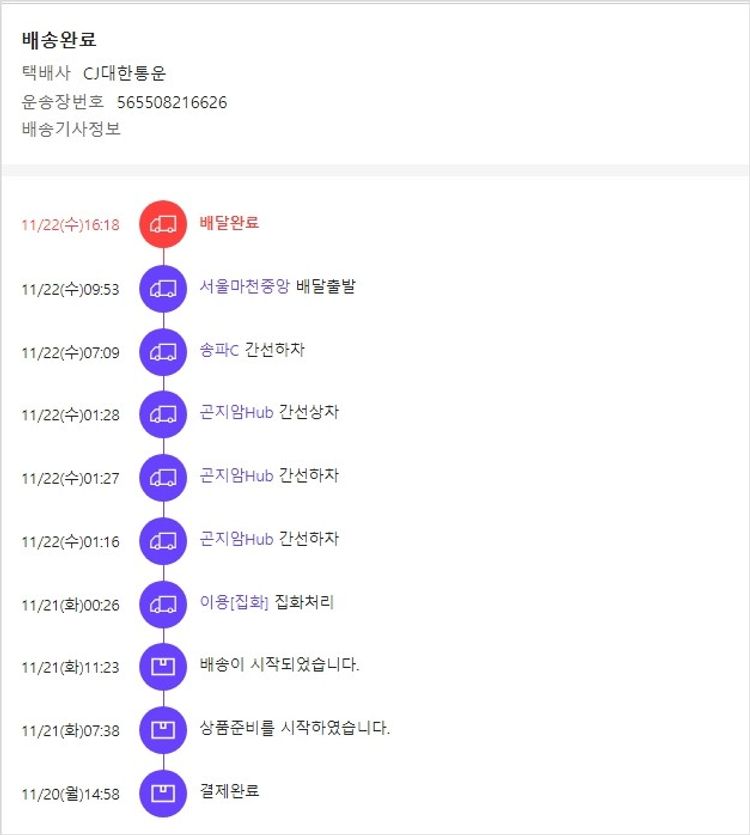 기부자님이 사용한 기부포인트 2,500원, 물품배송비 5,500원, 가격상승분 1,493원, 100원 미만 지원금 65원, 결제 수수료 9,165원, 기타 사업비는 행복나눔재단이 부담했습니다. (기부후기 발송시점에 최종 업데이트 됩니다.) 실제 쇼핑몰에서 확인되는 배송현황을 캡처한 내용입니다. 실시간 자료와는 차이가 있을 수 있습니다.