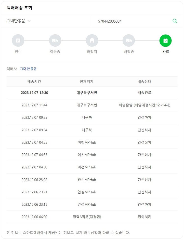 기부자님이 사용한 기부포인트 700원, 가격상승분 2원, 100원 미만 지원금 28원, 결제 수수료 16,416원, 기타 사업비는 행복나눔재단이 부담했습니다. (기부후기 발송시점에 최종 업데이트 됩니다.) 실제 쇼핑몰에서 확인되는 배송현황을 캡처한 내용입니다. 실시간 자료와는 차이가 있을 수 있습니다.