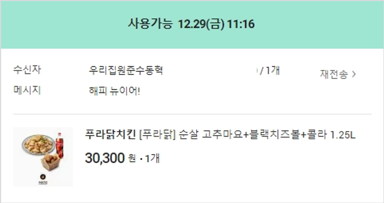기부자님이 사용한 기부포인트 7,000원, 물품배송비 3,000원, 가격상승분 1,012원, 100원 미만 지원금 44원, 결제 수수료 13,539원, 기타 사업비는 행복나눔재단이 부담했습니다. (기부후기 발송시점에 최종 업데이트 됩니다.) 주문 건 중 품절 건 발생하여 2023. 12. 29. 기프티콘으로 재주문했습니다.