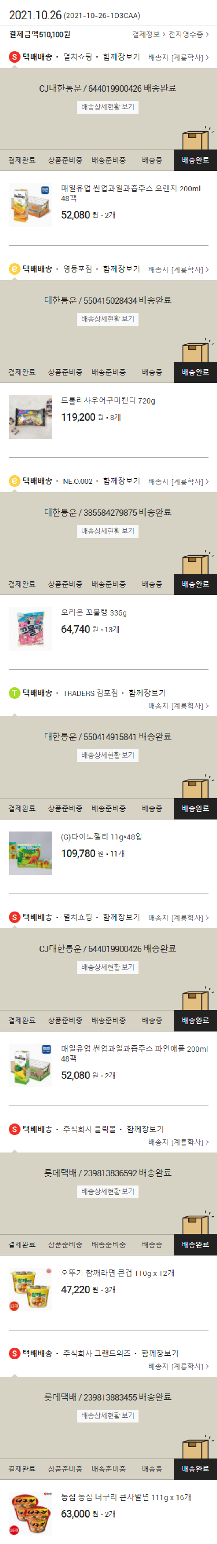 기부자님이 사용한 기부포인트 8,500원, 물품배송비 2,000원, 가격상승분 12,948원, 100원 미만 지원금 52원, 결제 수수료 12,996원, 기타 사업비는 행복나눔재단이 부담했습니다. (기부후기 발송시점에 최종 업데이트 됩니다.) 실제 쇼핑몰에서 확인되는 배송현황을 캡처한 내용입니다. 실시간 자료와는 차이가 있을 수 있습니다.