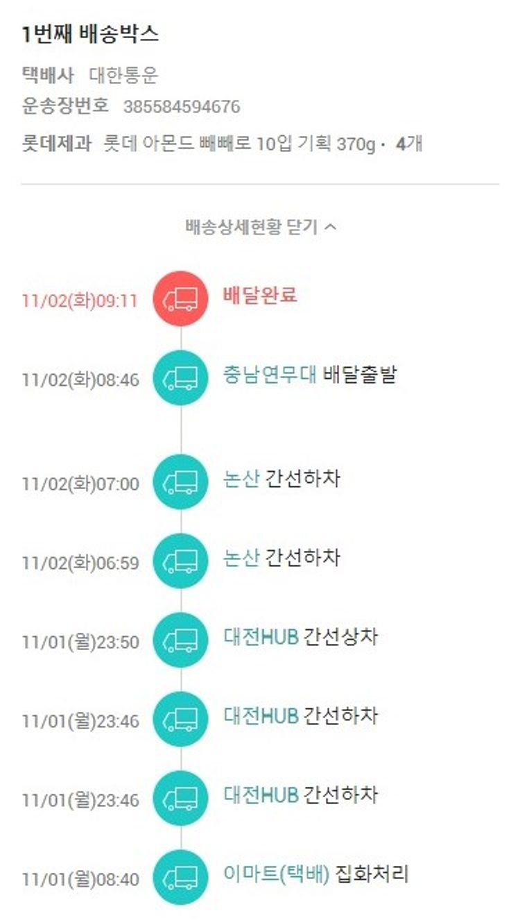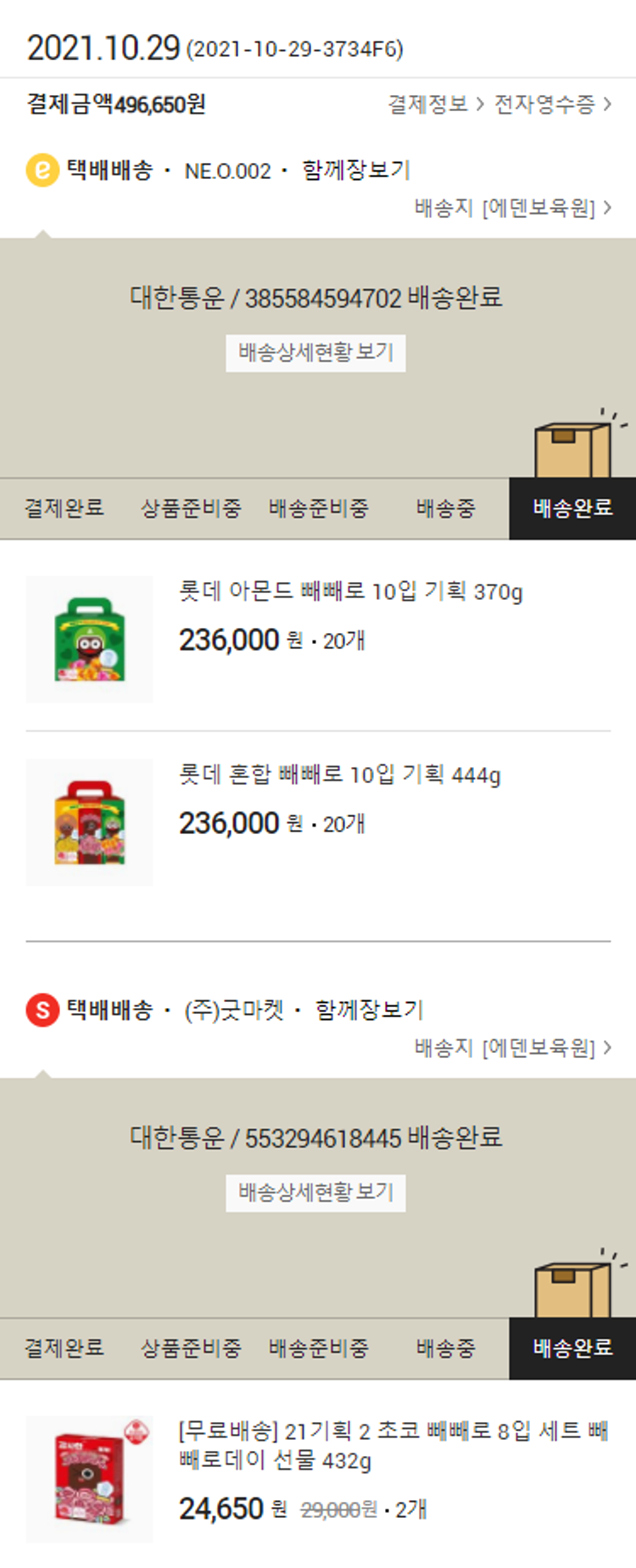 기부자님이 사용한 기부포인트 60,600원, 가격상승분 362원, 100원 미만 지원금 88원, 결제 수수료 12,814원, 기타 사업비는 행복나눔재단이 부담했습니다. (기부후기 발송시점에 최종 업데이트 됩니다.) 실제 쇼핑몰에서 확인되는 배송현황을 캡처한 내용입니다. 실시간 자료와는 차이가 있을 수 있습니다.