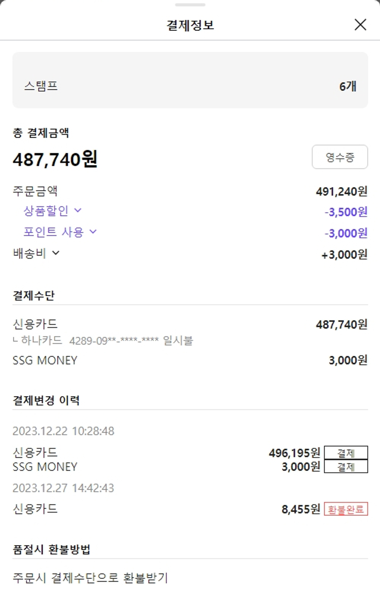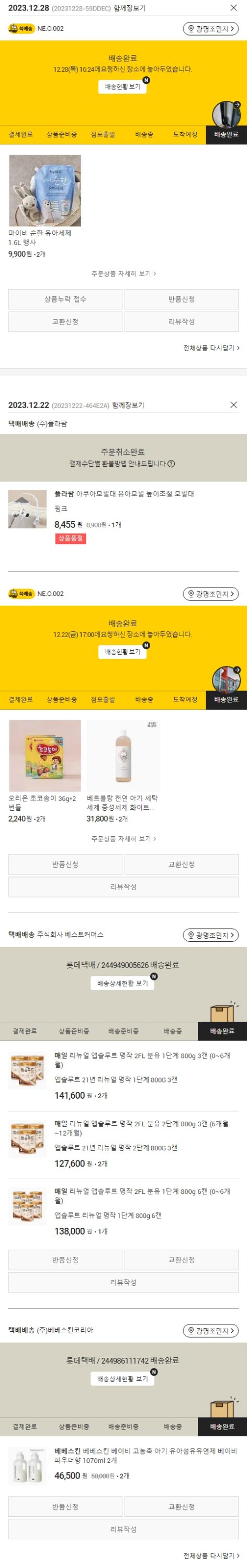 기부자님이 사용한 기부포인트 19,500원, 가격상승분 1,445원, 100원 미만 지원금 95원, SSG 머니 6,000포인트, 결제 수수료 10,404원, 기타 사업비는 행복나눔재단이 부담했습니다. (기부후기 발송시점에 최종 업데이트 됩니다.) 주문 건 중 품절 건 발생하여 2023. 12. 28. 재주문했습니다. 실제 쇼핑몰에서 확인되는 배송현황을 캡처한 내용입니다. 실시간 자료와는 차이가 있을 수 있습니다.