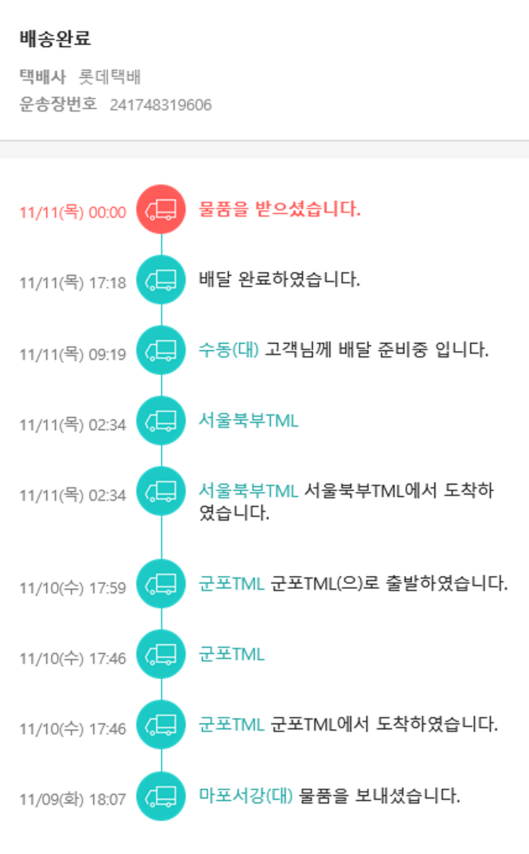 가격상승분 7,164원, 100원 미만 지원금 2원, 결제 수수료 11,000원, 기타 사업비는 행복나눔재단이 부담했습니다. (기부후기 발송시점에 최종 업데이트 됩니다.) 실제 쇼핑몰에서 확인되는 배송현황을 캡처한 내용입니다. 실시간 자료와는 차이가 있을 수 있습니다.