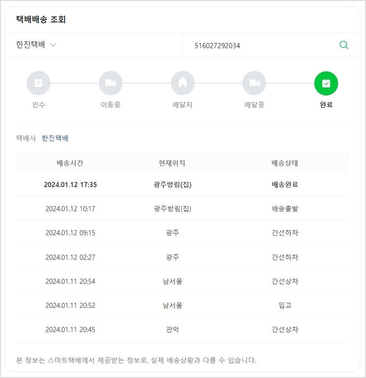기부자님이 사용한 기부포인트 6,000원, 가격상승분 620원, 100원 미만 지원금 80원, 결제 수수료 10,889원, 기타 사업비는 행복나눔재단이 부담했습니다. (기부후기 발송시점에 최종 업데이트 됩니다.) 실제 쇼핑몰에서 확인되는 배송현황을 캡처한 내용입니다. 실시간 자료와는 차이가 있을 수 있습니다.