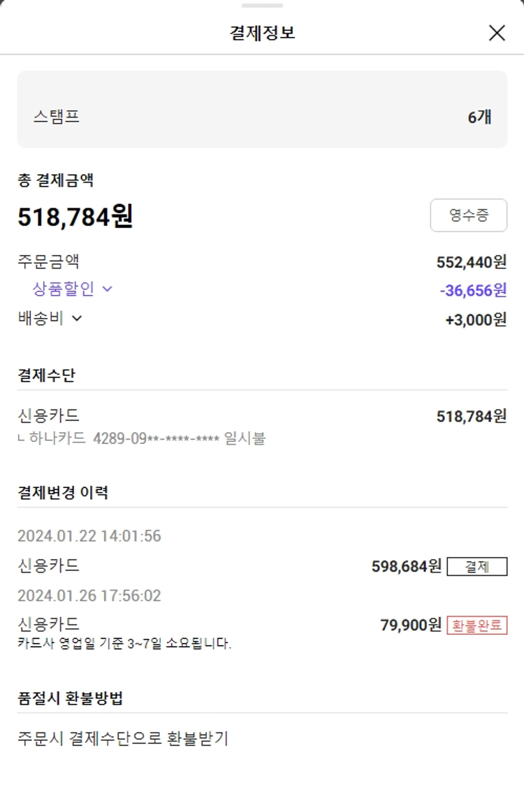 물품배송비 3,000원, 가격상승분 293원, 100원 미만 지원금 49원, 결제 수수료 20,771원, 기타 사업비는 행복나눔재단이 부담했습니다. (기부후기 발송시점에 최종 업데이트 됩니다.) 주문 건 중 품절 건 발생하여 2024. 01. 30. 재주문했습니다. 실제 쇼핑몰에서 확인되는 배송현황을 캡처한 내용입니다. 실시간 자료와는 차이가 있을 수 있습니다.