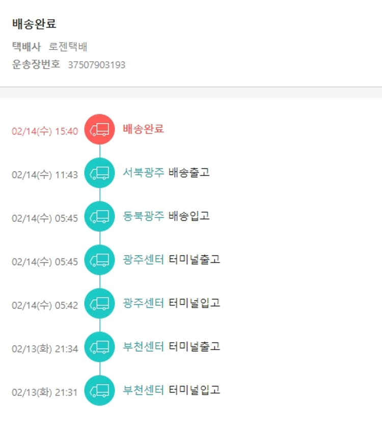기부자님이 사용한 기부포인트 18,100원, 가격상승분 1,600원, 100원 미만 지원금 50원, 결제 수수료 17,667원, 기타 사업비는 행복나눔재단이 부담했습니다. (기부후기 발송시점에 최종 업데이트 됩니다.) 실제 쇼핑몰에서 확인되는 배송현황을 캡처한 내용입니다. 실시간 자료와는 차이가 있을 수 있습니다.