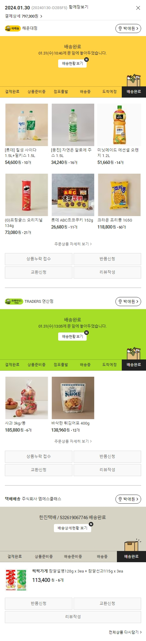 기부자님이 사용한 기부포인트 45,500원, 가격상승분 60원, 100원 미만 지원금 40원, 결제 수수료 19,034원, 기타 사업비는 행복나눔재단이 부담했습니다. (기부후기 발송시점에 최종 업데이트 됩니다.) 실제 쇼핑몰에서 확인되는 배송현황을 캡처한 내용입니다. 실시간 자료와는 차이가 있을 수 있습니다.