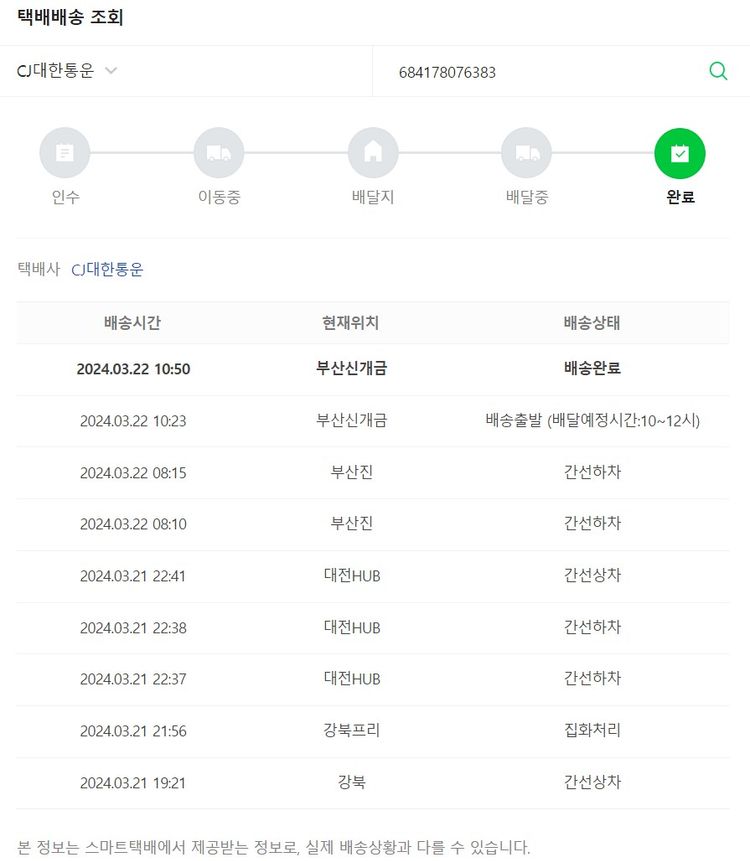 기부자님이 사용한 기부포인트 6,800원, 가격상승분 540원, 100원 미만 지원금 55원, 결제 수수료 20,799원, 기타 사업비는 행복나눔재단이 부담했습니다. (기부후기 발송시점에 최종 업데이트 됩니다.) 실제 쇼핑몰에서 확인되는 배송현황을 캡처한 내용입니다. 실시간 자료와는 차이가 있을 수 있습니다.