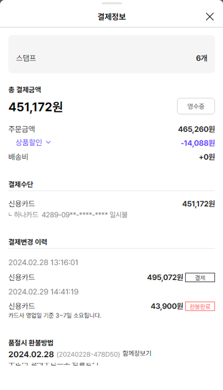 기부자님이 사용한 기부포인트 55,000원, 물품배송비 3,000원, 가격상승분 10원, 100원 미만 지원금 62원, 결제 수수료 10,995원, 기타 사업비는 행복나눔재단이 부담했습니다. (기부후기 발송시점에 최종 업데이트 됩니다.) 주문 건 중 품절 건 발생하여 2024. 02. 29. 재주문했습니다. 실제 쇼핑몰에서 확인되는 배송현황을 캡처한 내용입니다. 실시간 자료와는 차이가 있을 수 있습니다.