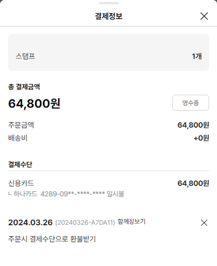 주문 건 중 품절 건 발생하여 2024. 03. 29. 재주문했습니다.