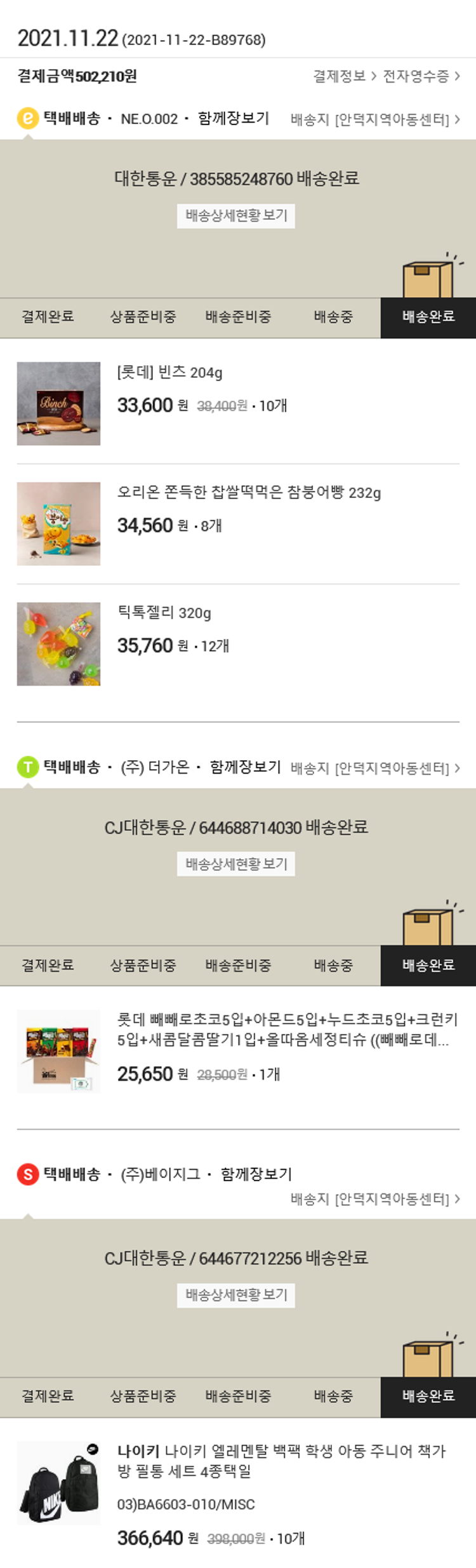 기부자님이 사용한 기부포인트 66,050원, 물품배송비 6,000원, 가격상승분 5,000원, 100원 미만 지원금 10원, 결제 수수료 11,847원, 기타 사업비는 행복나눔재단이 부담했습니다. (기부후기 발송시점에 최종 업데이트 됩니다.) 실제 쇼핑몰에서 확인되는 배송현황을 캡처한 내용입니다. 실시간 자료와는 차이가 있을 수 있습니다.