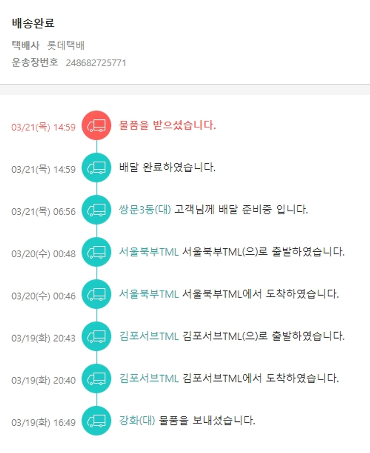 가격상승분 2,060원, 100원 미만 지원금 19원, 결제 수수료 24,432원, 기타 사업비는 행복나눔재단이 부담했습니다. (기부후기 발송시점에 최종 업데이트 됩니다.) 실제 쇼핑몰에서 확인되는 배송현황을 캡처한 내용입니다. 실시간 자료와는 차이가 있을 수 있습니다.