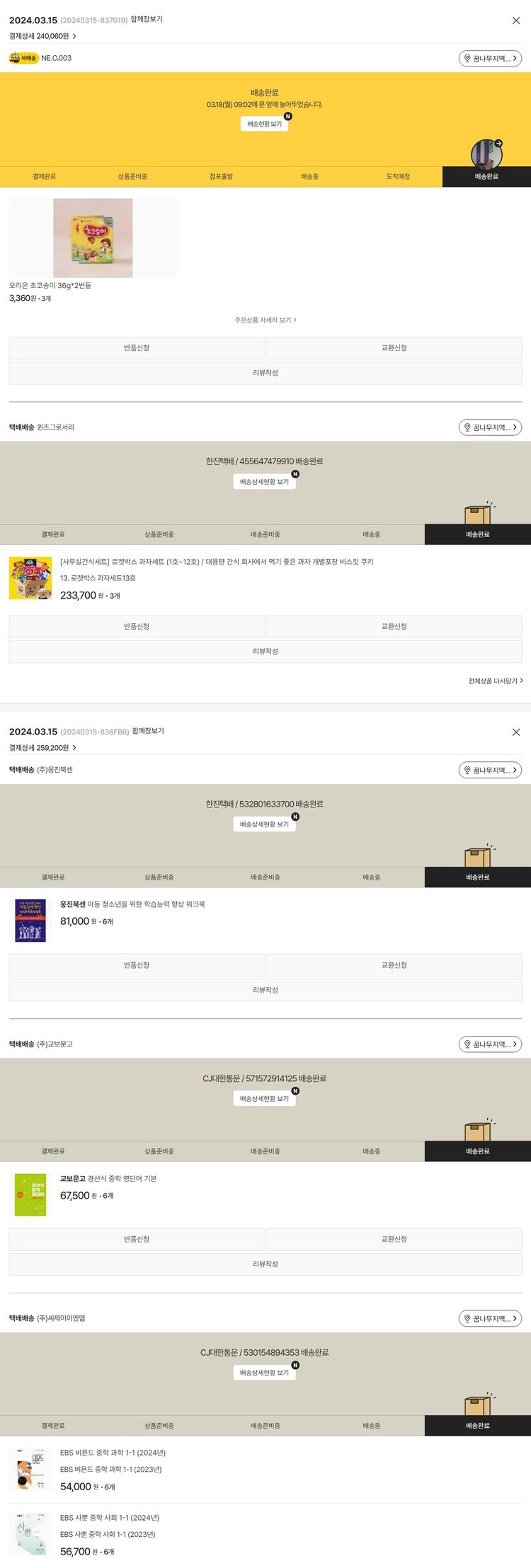 기부자님이 사용한 기부포인트 7,000원, 물품배송비 3,000원, 100원 미만 지원금 60원, 결제 수수료 17,219원, 기타 사업비는 행복나눔재단이 부담했습니다. (기부후기 발송시점에 최종 업데이트 됩니다.) 실제 쇼핑몰에서 확인되는 배송현황을 캡처한 내용입니다. 실시간 자료와는 차이가 있을 수 있습니다.