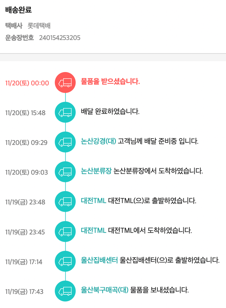 가격상승분 8,600원, 100원 미만 지원금 40원, 기타 사업비는 행복나눔재단이 부담했습니다. (기부후기 발송시점에 최종 업데이트 됩니다.) 실제 쇼핑몰에서 확인되는 배송현황을 캡처한 내용입니다. 실시간 자료와는 차이가 있을 수 있습니다.