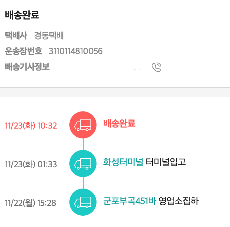 기부자님이 사용한 기부포인트 23,100원, 100원 미만 지원금 60원, 결제 수수료 15,632원, 기타 사업비는 행복나눔재단이 부담했습니다. (기부후기 발송시점에 최종 업데이트 됩니다.) 실제 쇼핑몰에서 확인되는 배송현황을 캡처한 내용입니다. 실시간 자료와는 차이가 있을 수 있습니다.