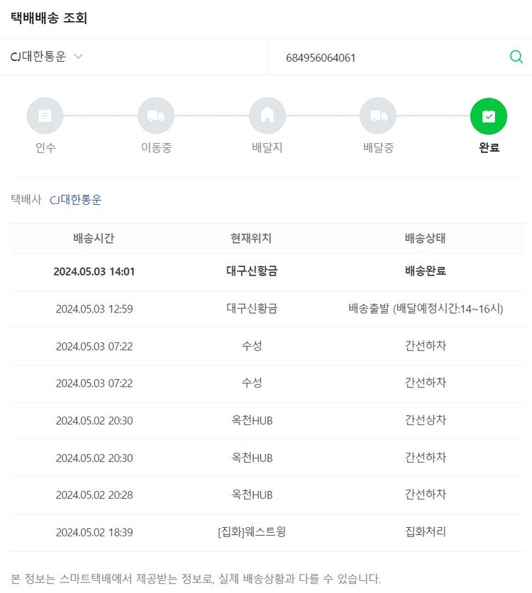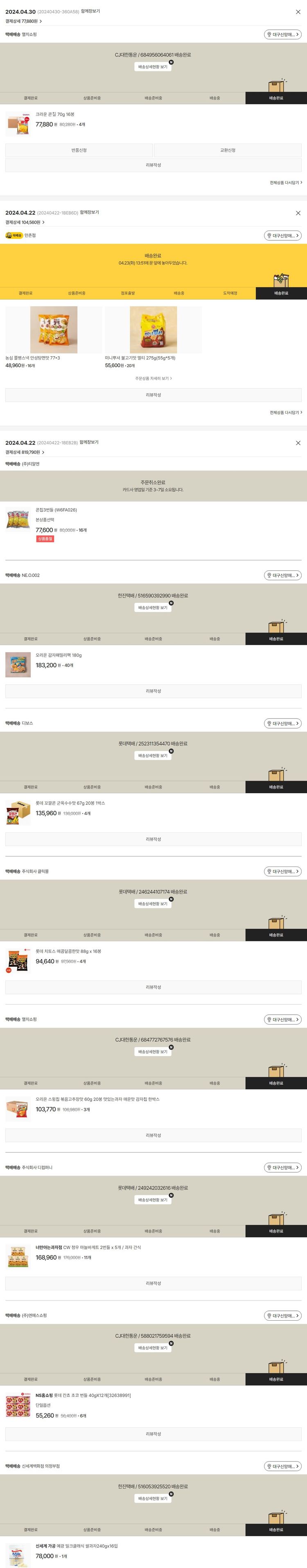 가격상승분 1,770원, 100원 미만 지원금 60원, 기타 사업비는 행복나눔재단이 부담했습니다. (기부후기 발송시점에 최종 업데이트 됩니다.) 주문 건 중 품절 건 발생하여 2024. 04. 30. 재주문했습니다. 실제 쇼핑몰에서 확인되는 배송현황을 캡처한 내용입니다. 실시간 자료와는 차이가 있을 수 있습니다.