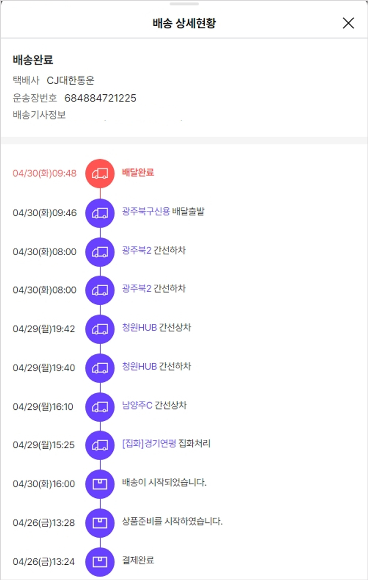 기부자님이 사용한 기부포인트 9,900원, 물품배송비 12,700원, 가격상승분 640원, 100원 미만 지원금 12원, 결제 수수료 9,064원, 기타 사업비는 행복나눔재단이 부담했습니다. (기부후기 발송시점에 최종 업데이트 됩니다.) 실제 쇼핑몰에서 확인되는 배송현황을 캡처한 내용입니다. 실시간 자료와는 차이가 있을 수 있습니다.