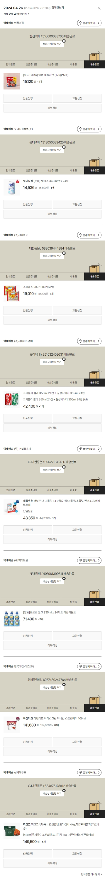 기부자님이 사용한 기부포인트 12,500원, 물품배송비 3,000원, 가격상승분 580원, 100원 미만 지원금 16원, 결제 수수료 10,402원, 기타 사업비는 행복나눔재단이 부담했습니다. (기부후기 발송시점에 최종 업데이트 됩니다.) 실제 쇼핑몰에서 확인되는 배송현황을 캡처한 내용입니다. 실시간 자료와는 차이가 있을 수 있습니다.
