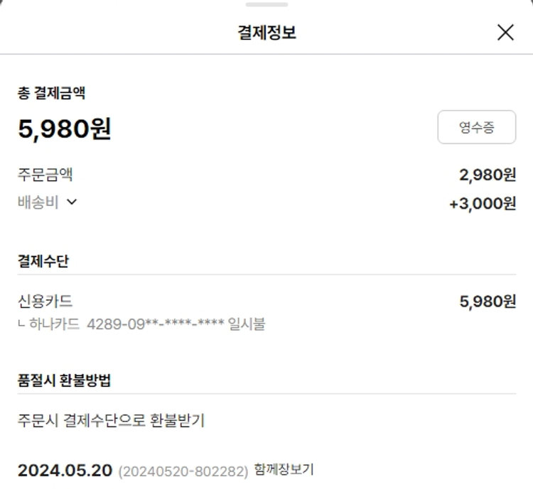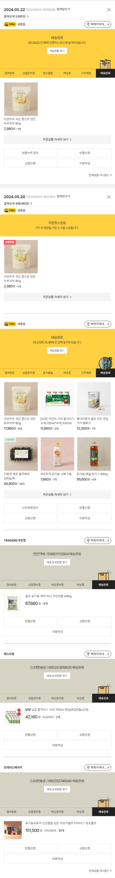 물품배송비 7,000원, 가격상승분 3,000원, 100원 미만 지원금 40원, 결제 수수료 11,819원, 기타 사업비는 행복나눔재단이 부담했습니다. (기부후기 발송시점에 최종 업데이트 됩니다.) 주문 건 중 품절 건 발생하여 2024. 05. 22. 재주문했습니다. 실제 쇼핑몰에서 확인되는 배송현황을 캡처한 내용입니다. 실시간 자료와는 차이가 있을 수 있습니다.