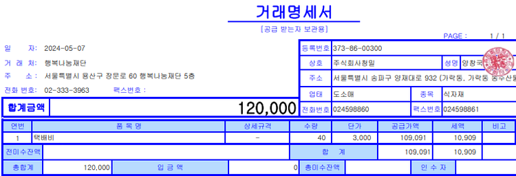 물품배송비 120,000원, 기타 사업비는 행복나눔재단이 부담했습니다. (기부후기 발송시점에 최종 업데이트 됩니다.) 실제 쇼핑몰에서 확인되는 배송현황을 캡처한 내용입니다. 실시간 자료와는 차이가 있을 수 있습니다.