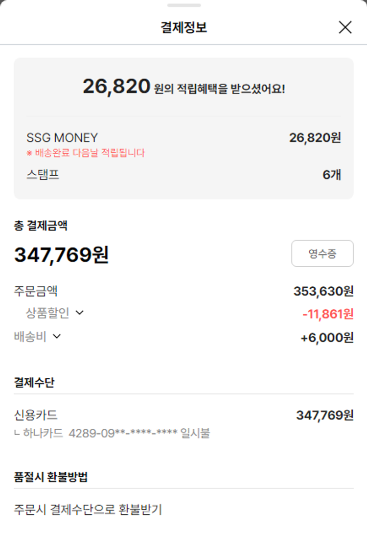 물품배송비 6,000원, 100원 미만 지원금 69원, 결제 수수료 7,736원, 기타 사업비는 행복나눔재단이 부담했습니다. (기부후기 발송시점에 최종 업데이트 됩니다.) 실제 쇼핑몰에서 확인되는 배송현황을 캡처한 내용입니다. 실시간 자료와는 차이가 있을 수 있습니다.